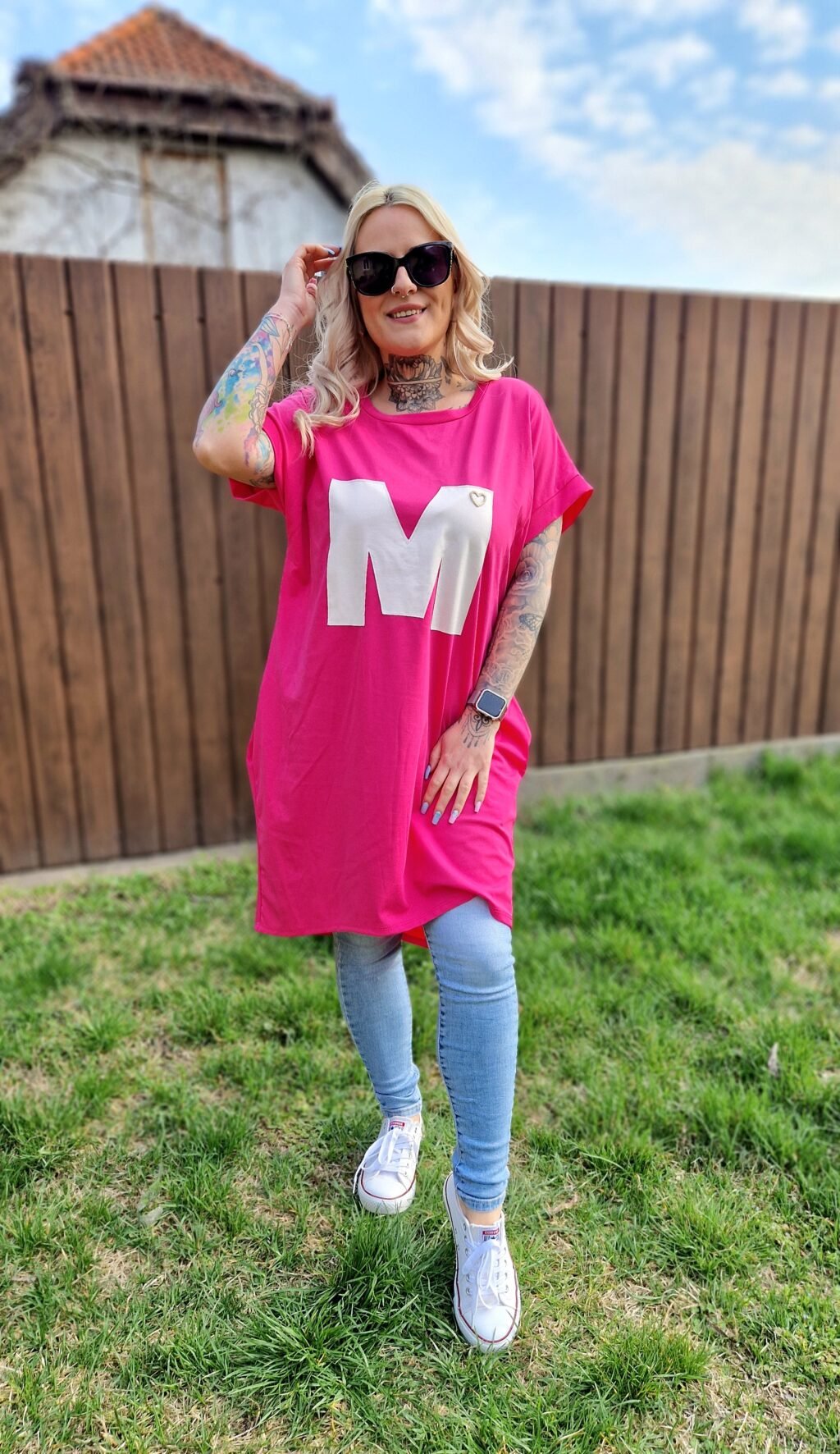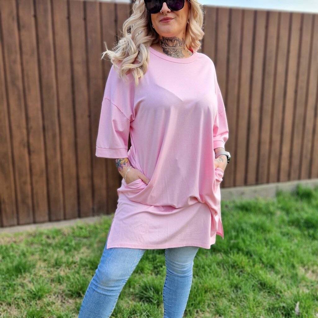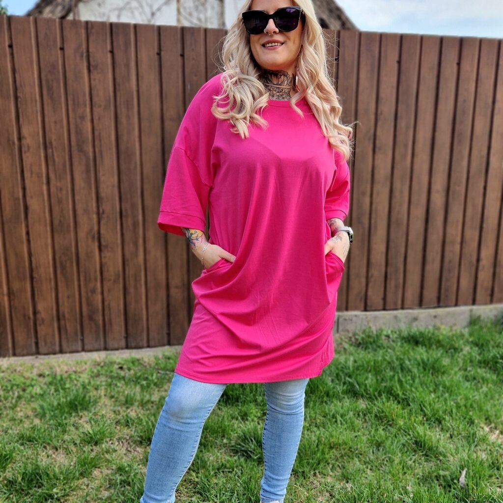 A Marina pink–fehér tunika vidám és nőies darab, ami tökéletes választás a hétköznapi szettekhez. A pink alapon a fehér “M” betű játékos, figyelemfelkeltő részlet az elején, miközben a praktikus zsebek extra kényelmet biztosítanak.