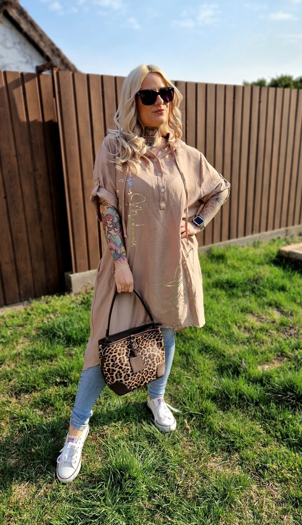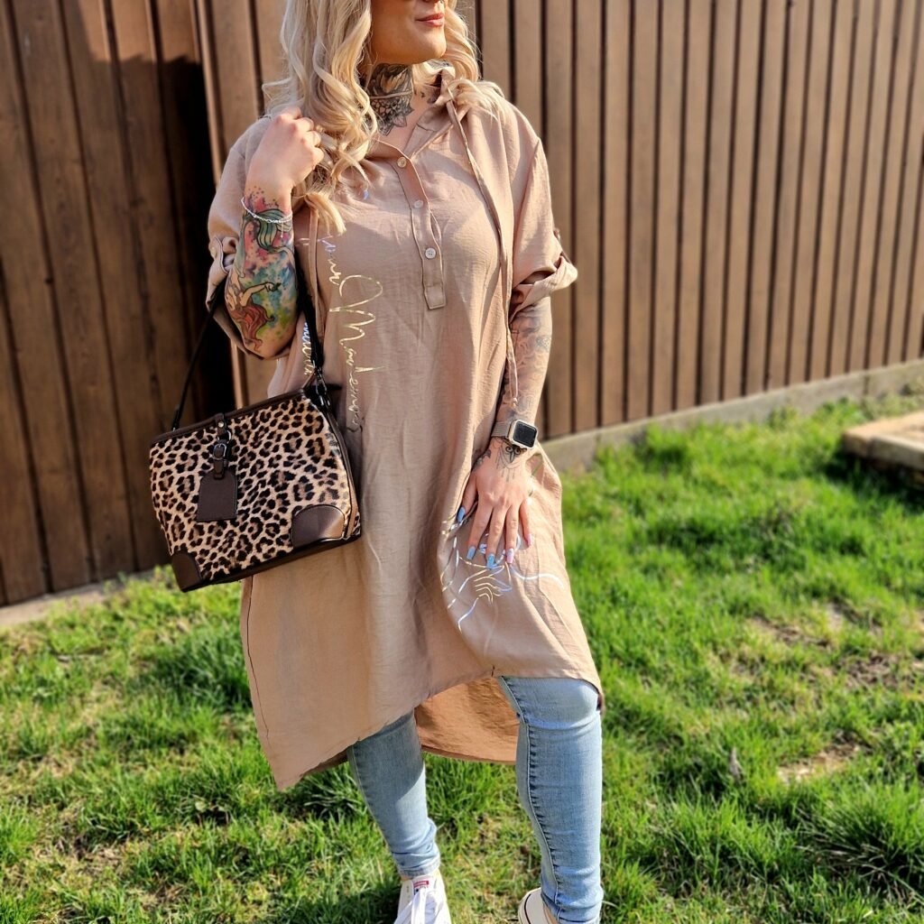 A Selina bő, kapucnis tunika barna változata stílusos és kényelmes darab, amely tökéletes a laza, hétköznapi szettekhez. A barna alapot arany színű írás és női alak motívum teszi különlegessé és figyelemfelkeltővé.