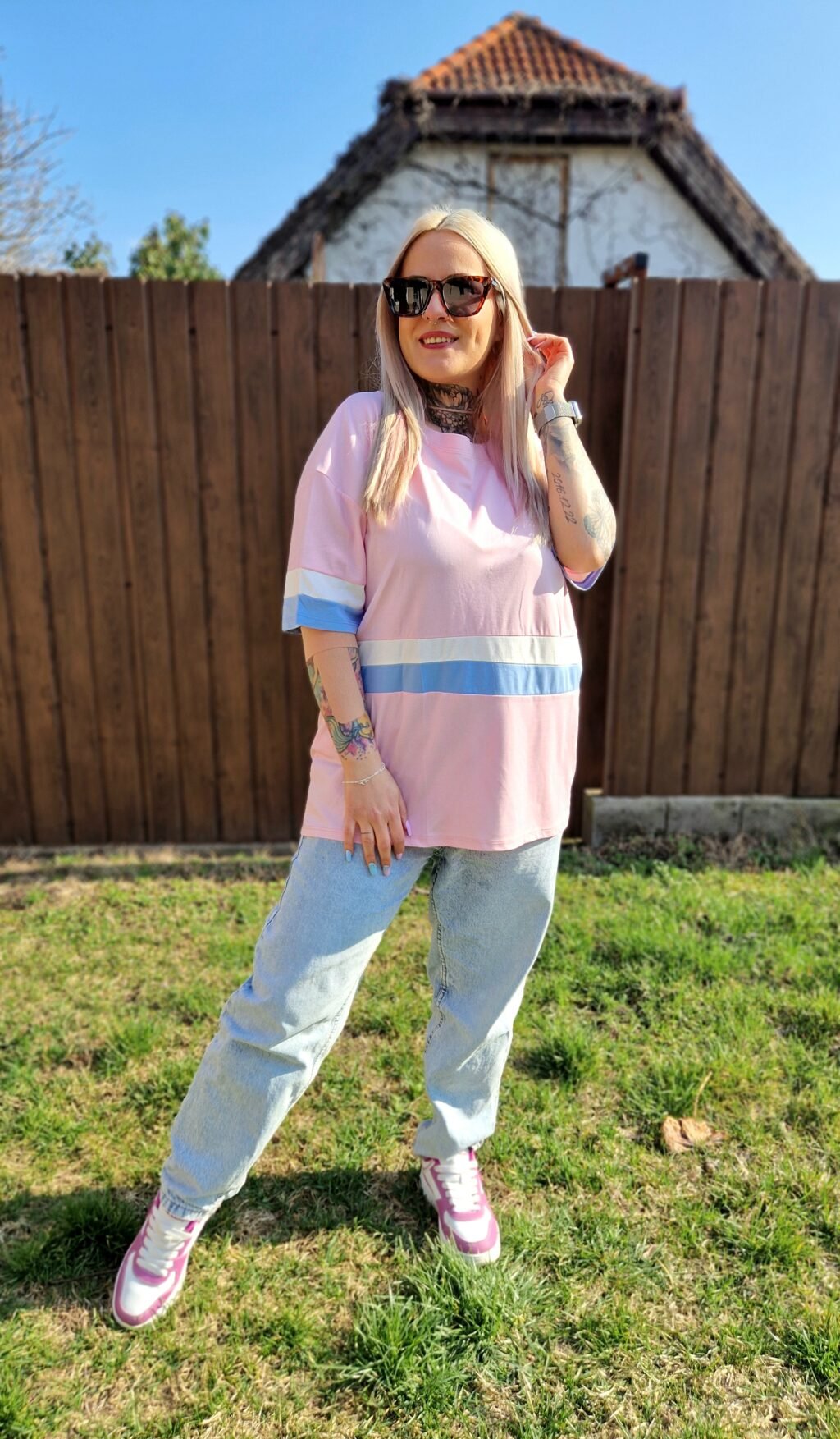 A Lara rózsaszín csíkos pamut póló egy vidám és nőies darab, amely feldobja a hétköznapi szetteket. A rózsaszín alapszín közepén futó kék-fehér csík friss, játékos megjelenést ad, miközben az egyszerű fazon kényelmes és könnyen kombinálható.