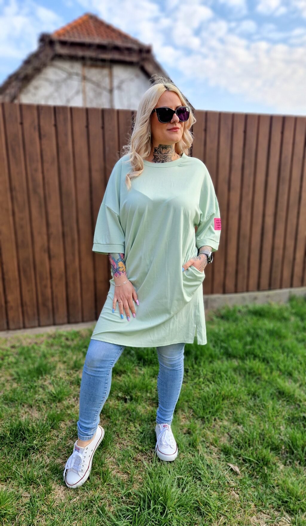 Az Amélie menta tunika friss, üde színével igazán nőies és könnyed darab a gardróbodba. A sima, egyszínű fazon bármilyen szett alapjául szolgálhat, míg a praktikus zsebek kényelmes és funkcionális kiegészítést adnak.