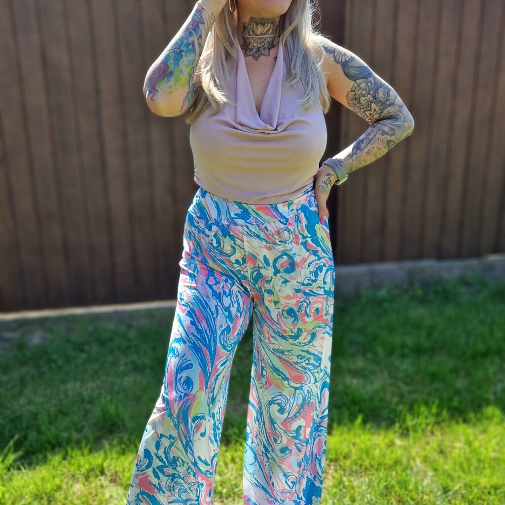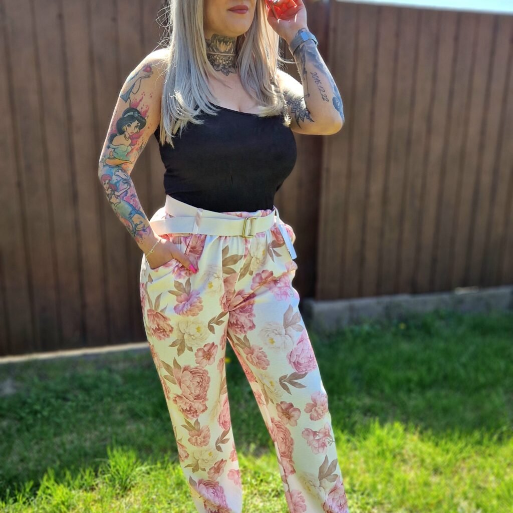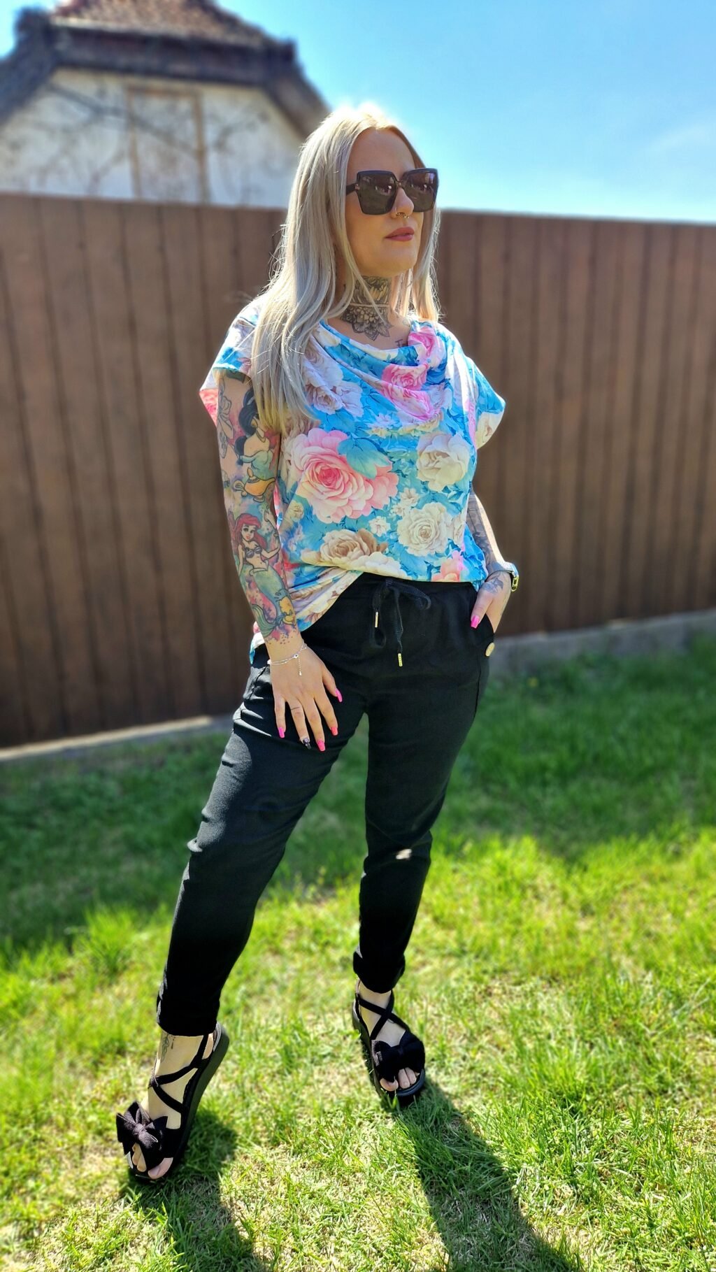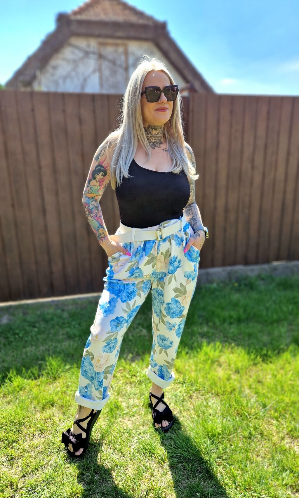 Az Eszter nadrág egy igazán romantikus, nőies darab fehér alapon rózsamintával, ami elegáns és friss megjelenést ad. Laza, kényelmes fazonja miatt tökéletes választás a mindennapokra és nyári programokra is, miközben csinos és rendezett hatást biztosít.