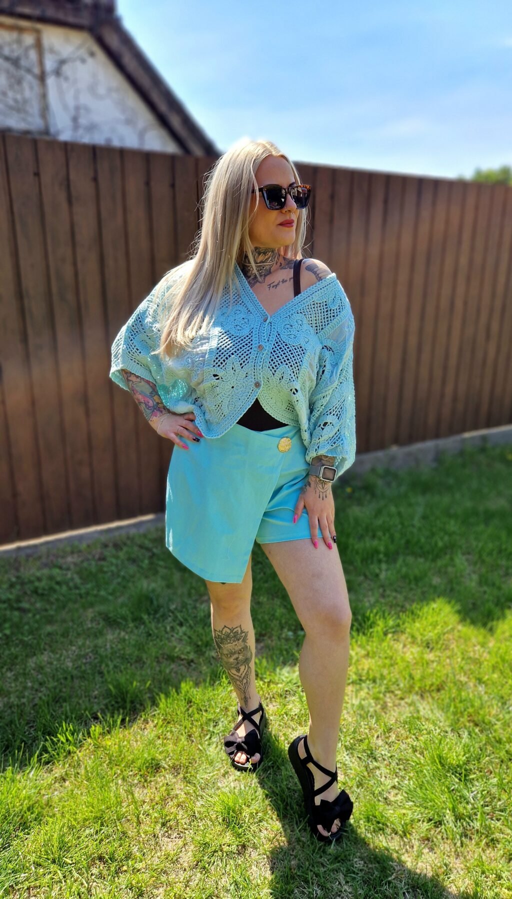 A Léna kardigán friss, üde menta színben is elérhető, ami igazán nyári és könnyed megjelenést ad. Csodaszép horgolt mintázata romantikus, bohém hangulatot teremt, miközben laza fazonja kényelmes viselet a mindennapokra.