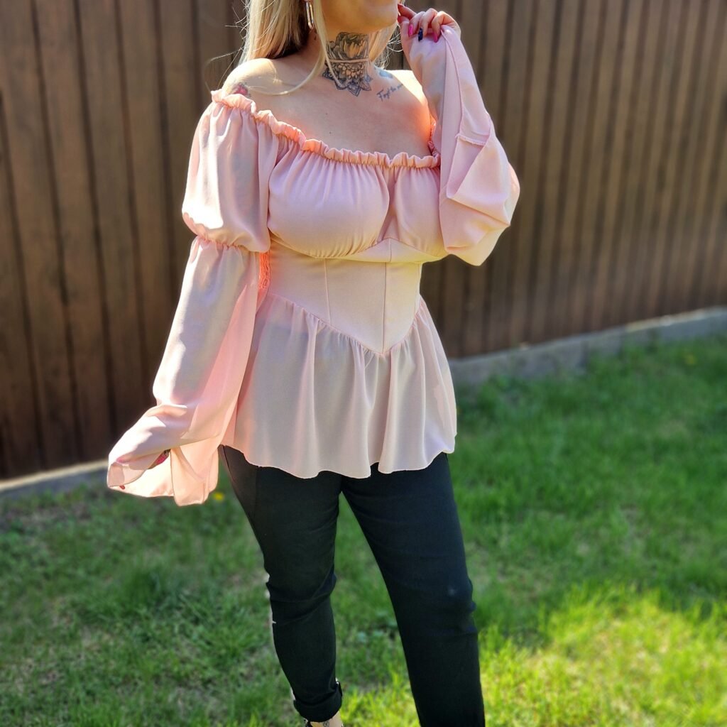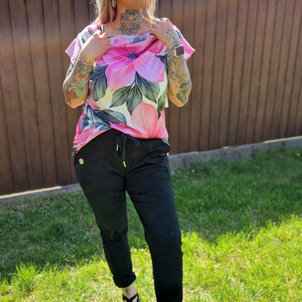 A Livi felső egy igazán nőies, romantikus darab nagy rózsaszín virágmintával, ami friss és nyári megjelenést biztosít. A V-nyak elegánsan kiemeli a dekoltázst, a gumis derékrész pedig kényelmes illeszkedést ad és szépen formálja az alakot.