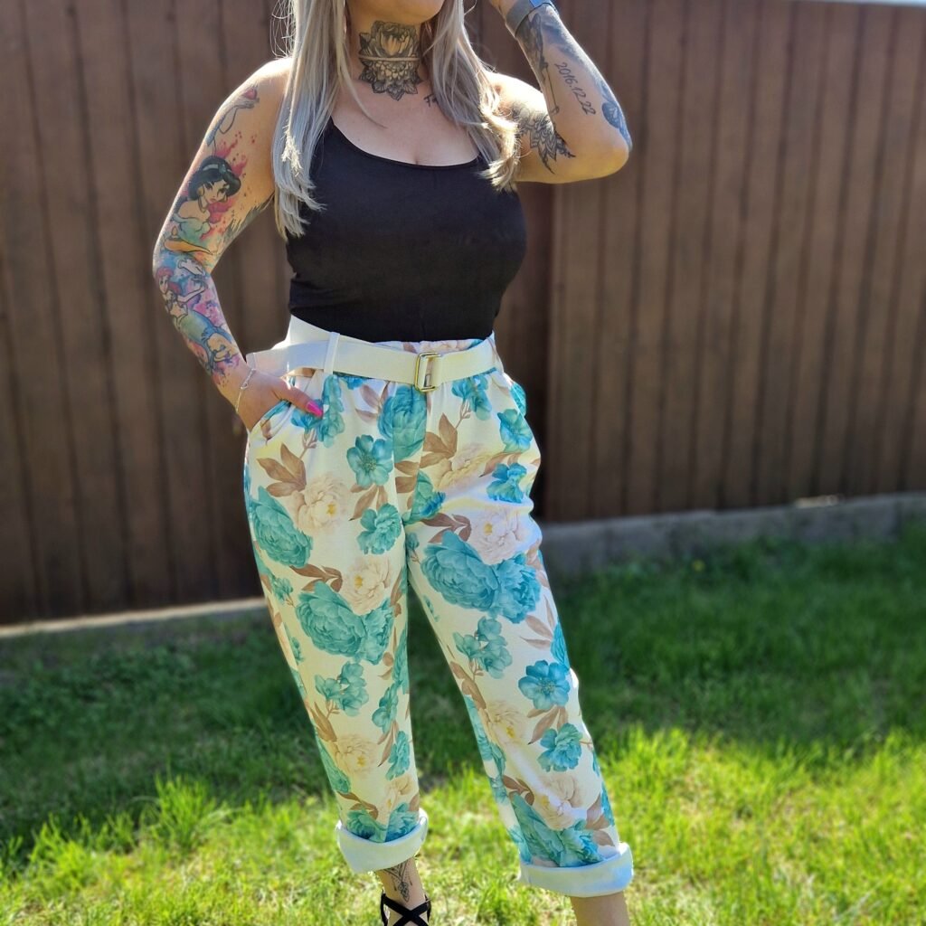 Az Eszter nadrág egy friss, nőies darab fehér alapon zöld virágmintával, ami természetes, üde megjelenést ad. Laza, kényelmes fazonja miatt tökéletes választás a hétköznapokra és a nyári programokra is, miközben csinos és rendezett hatást biztosít.