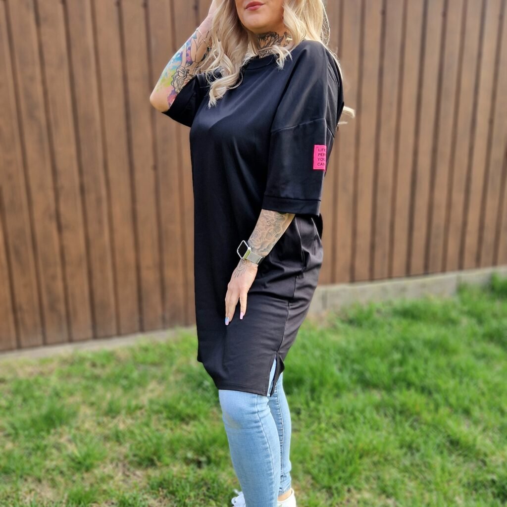 Laza, kényelmes szabásának köszönhetően S–XL méretig mindenki számára ideális, és jól variálható nadrágokkal, leggingsszel vagy szoknyákkal.