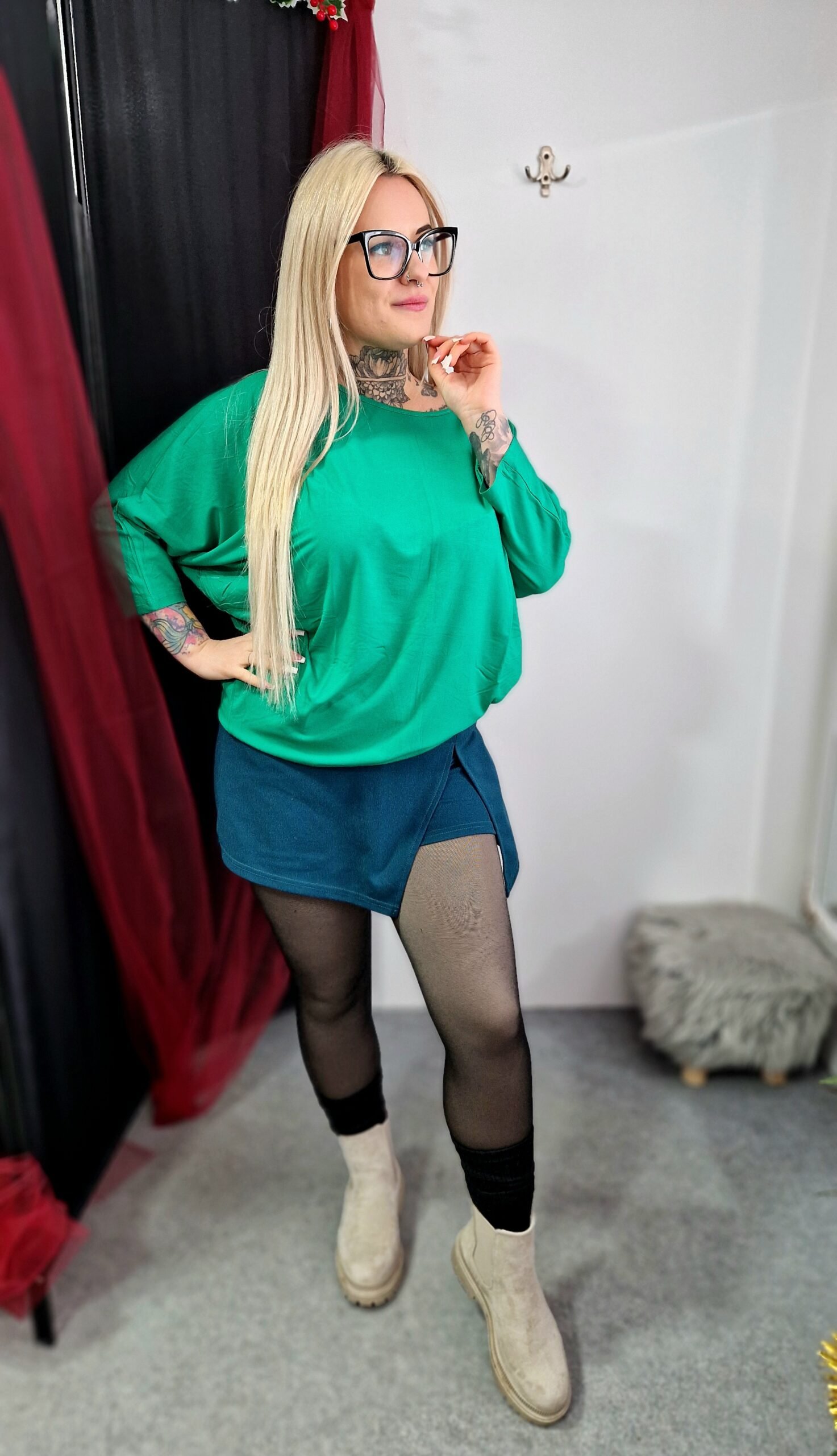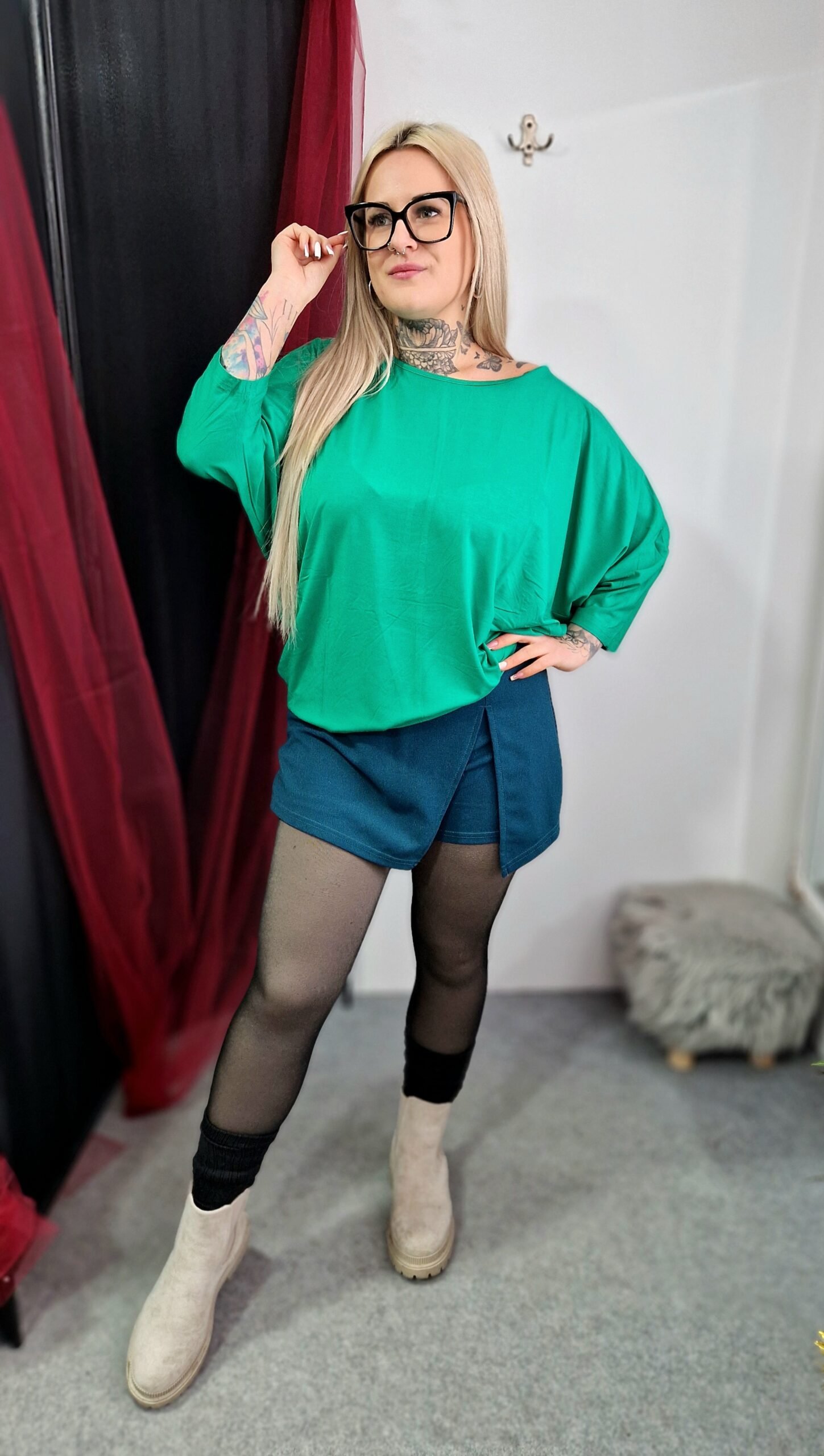 A Benetton Aura denevérujjú pamut felső tökéletes választás, ha friss és nőies alapdarabot keresel a gardróbodba. Laza szabása és denevérujjú fazonja lágy esést biztosít, miközben puha pamut anyaga egész nap kényelmes viseletet nyújt. A zöld árnyalat üde, természetközeli hatást kölcsönöz, és könnyen kombinálható különböző stílusokkal.