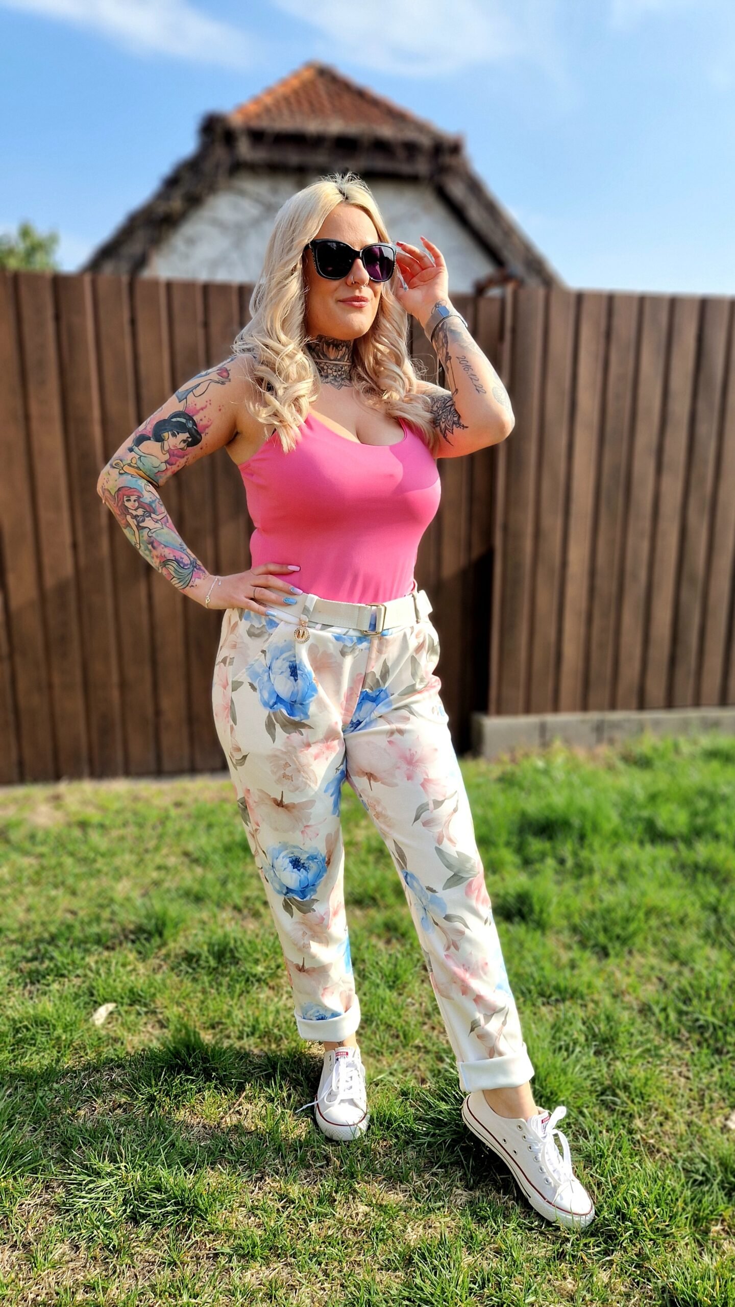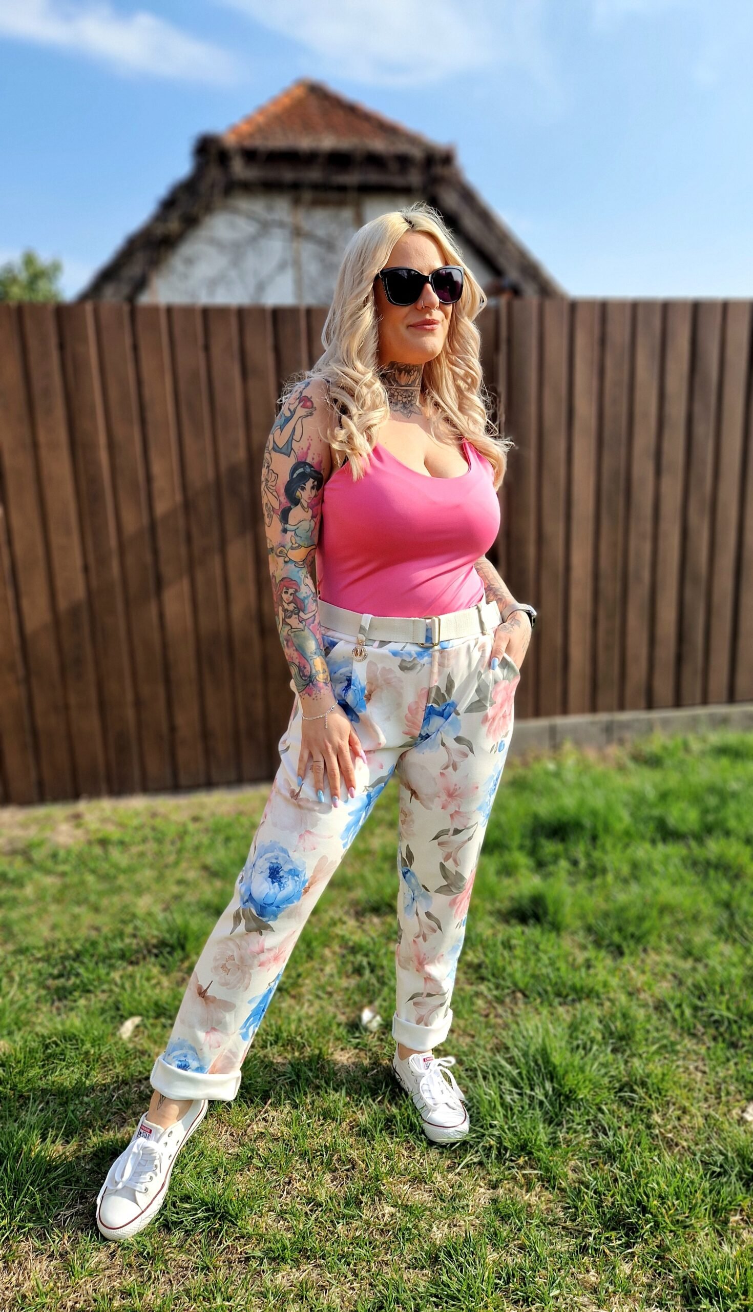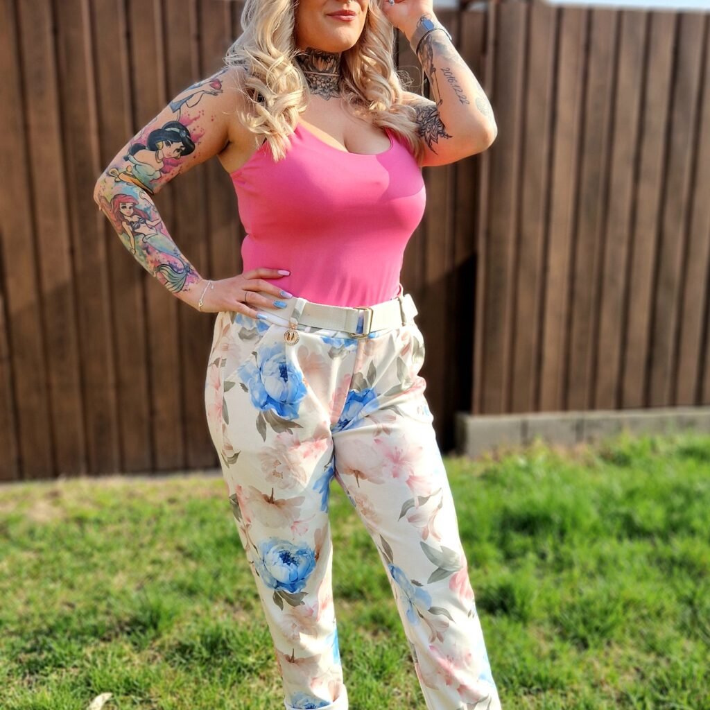 A Flóra virágmintás nadrág igazán friss és nőies darab, ami tökéletes választás a tavaszi–nyári időszakra. A bézs alapon kék és rózsaszín virágminta romantikus és vidám hangulatot ad, miközben könnyen kombinálható más darabokkal is.