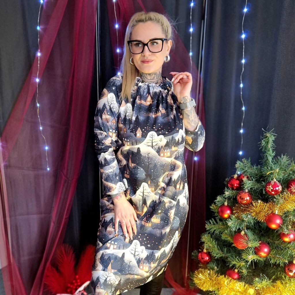 Tökéletes párosítása a fekete vagy szürke harisnya, valamint a ezüst ékszerek, amelyek harmonizálnak a havas minta fagyos ragyogásával. Lábbelinek válassz fekete bokacsizmát a még elegánsabb téli lookhoz.