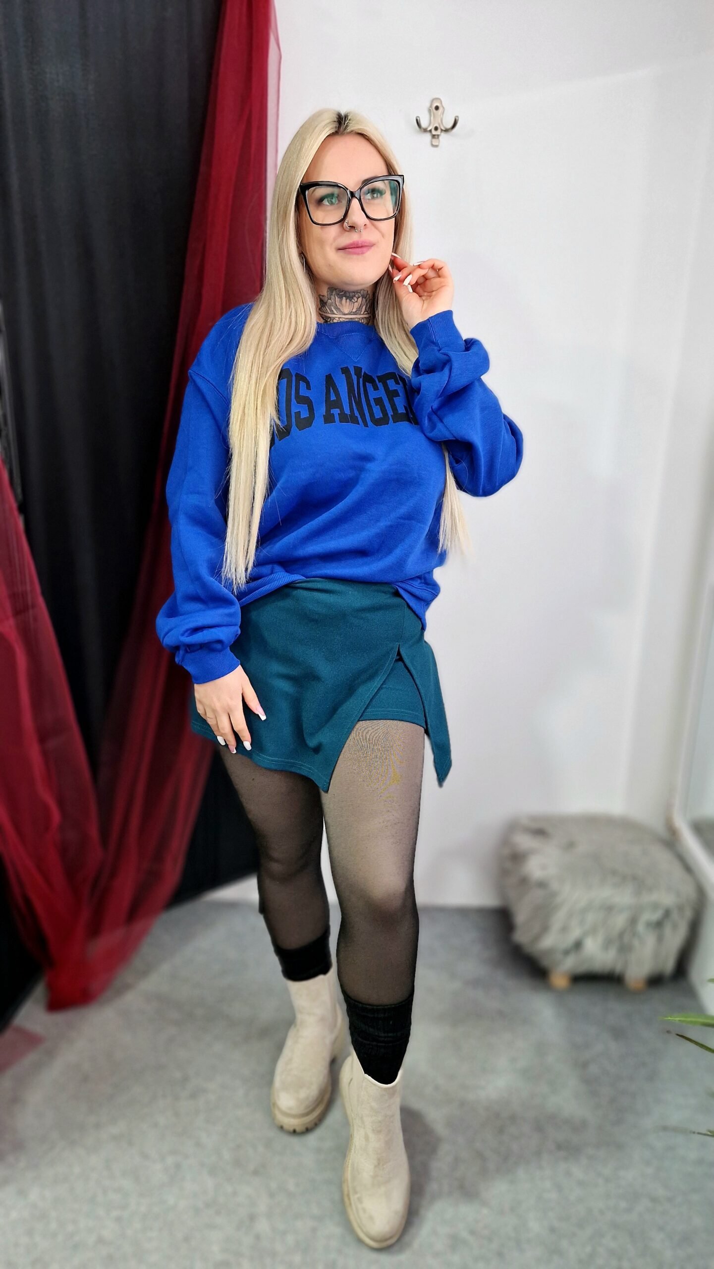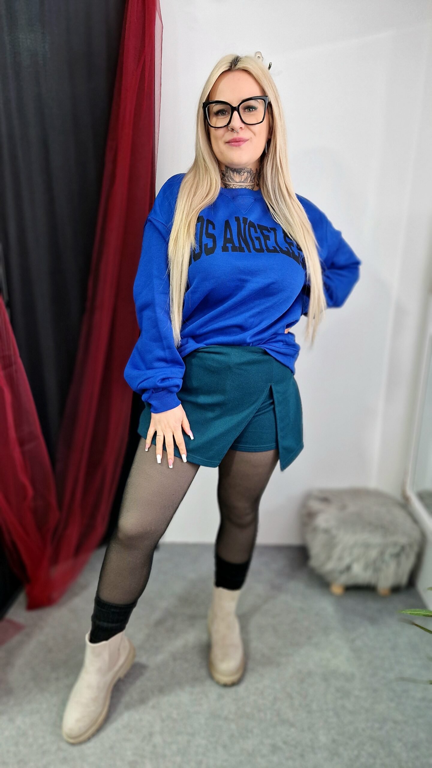 Kék színe friss, mégis könnyen kombinálható, ideális hétköznapi és sportos szettekhez.