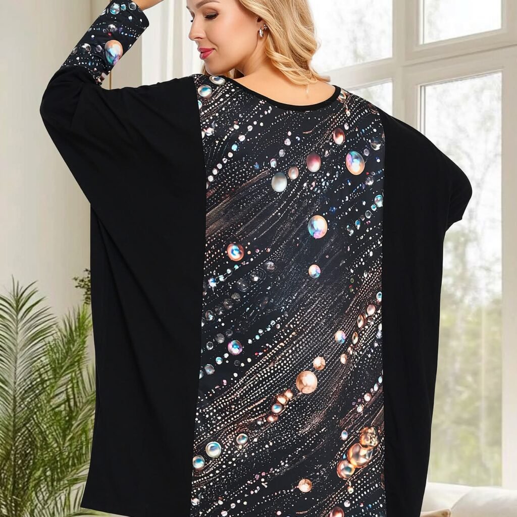 Párosítsd fekete leggingsszel vagy skinny farmerrel a letisztult összhatásért. Arany tónusú ékszerekkel és egy fekete táskával különösen szépen kiemelheted a minta eleganciáját. Sneakerrel sportos, bokacsizmával nőiesebb szettet kapsz. ✨🖤