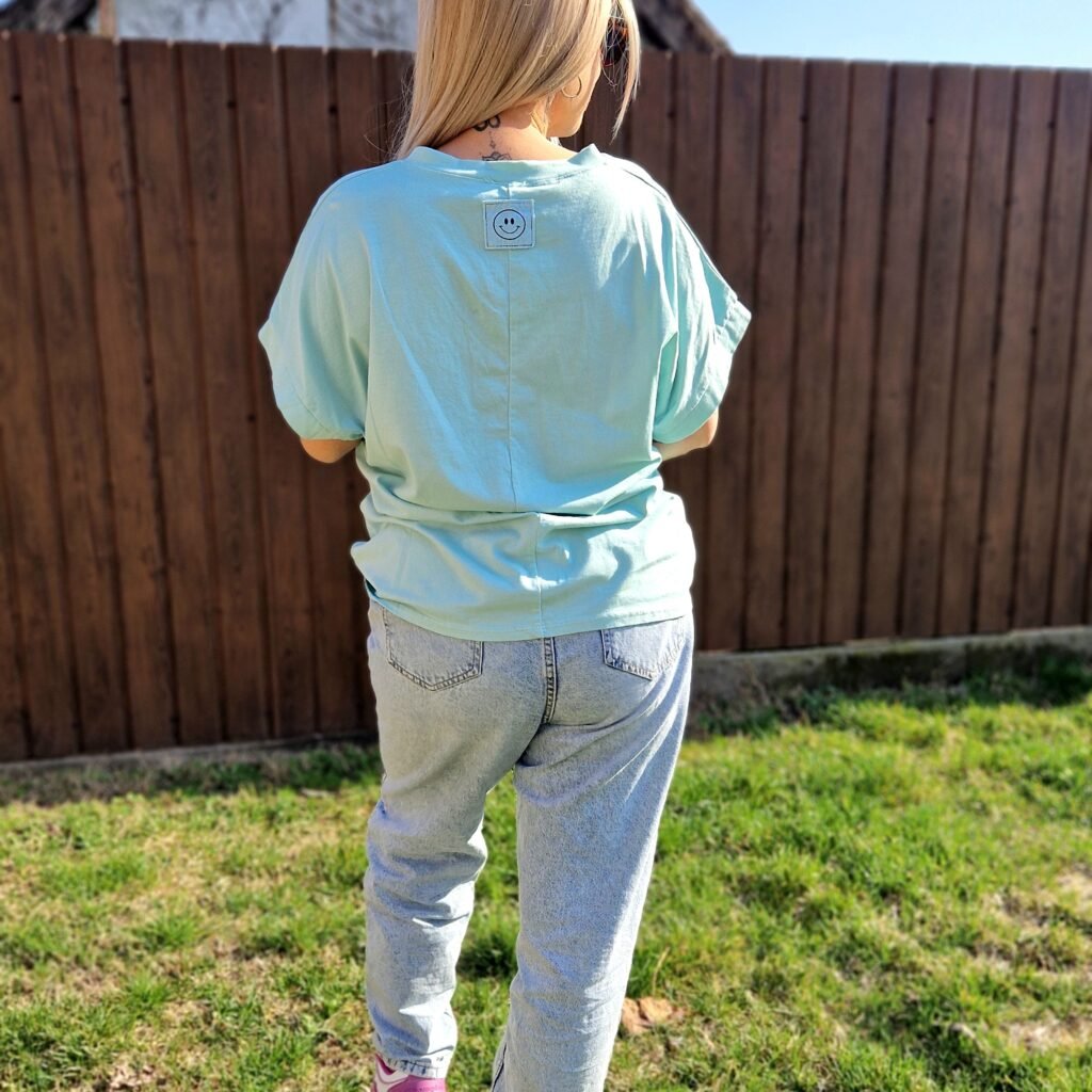 A Nara menta pamut póló egy friss, üde árnyalatú alapdarab, amely feldobja a mindennapokat. Az egyszínű menta szín lágy és nőies megjelenést ad, az egyszerű fazon pedig könnyen kombinálható bármilyen ruhadarabbal.