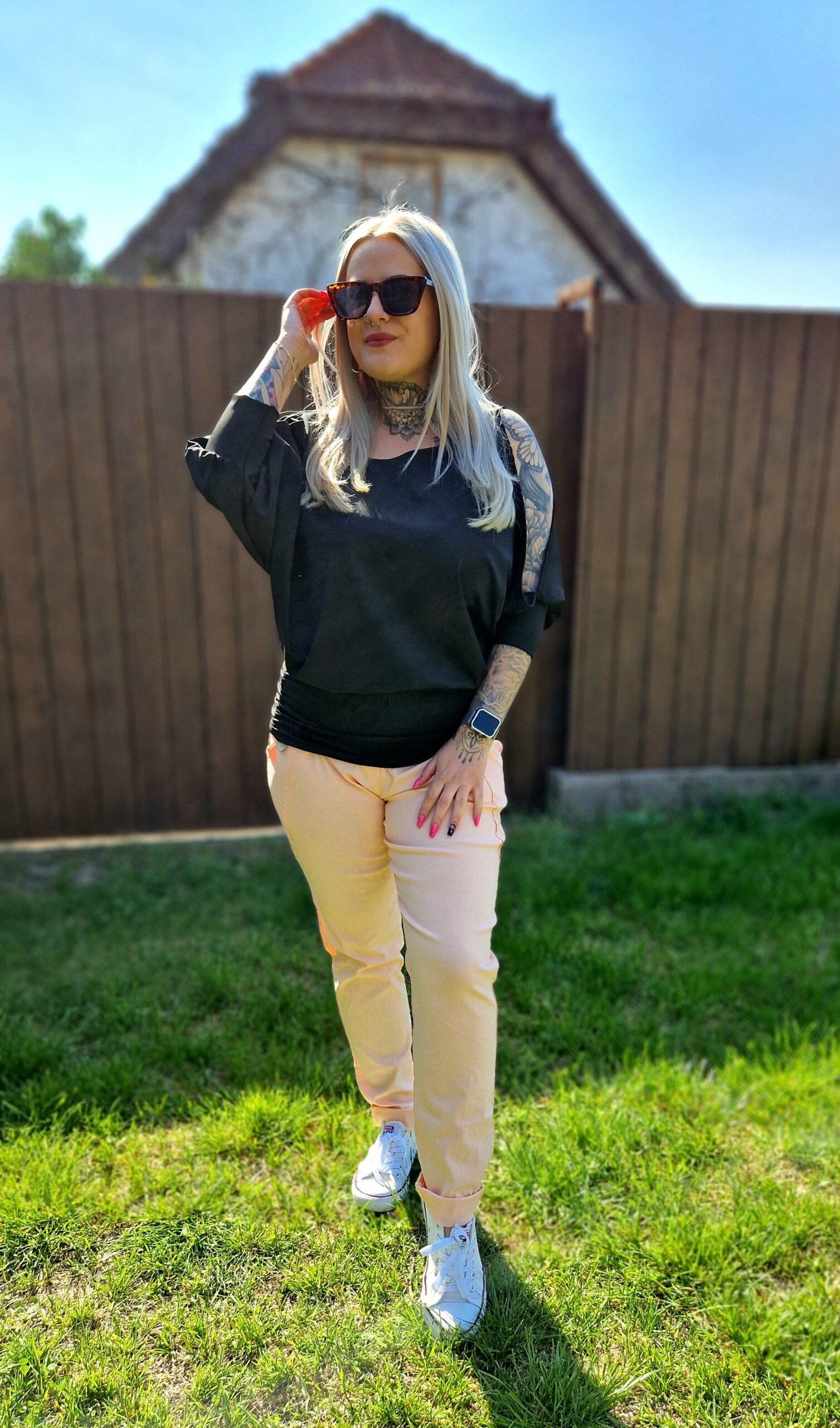 Miniruhaként viselve elegáns szandállal vagy papuccsal igazán stílusos szett. Tunikaként leggingsszel vagy szűk farmerrel kombinálva is remek választás. Egy feltűnő nyaklánccal, napszemüveggel és divatos táskával tökéletesen feldobhatod a megjelenést. 🖤👗👜