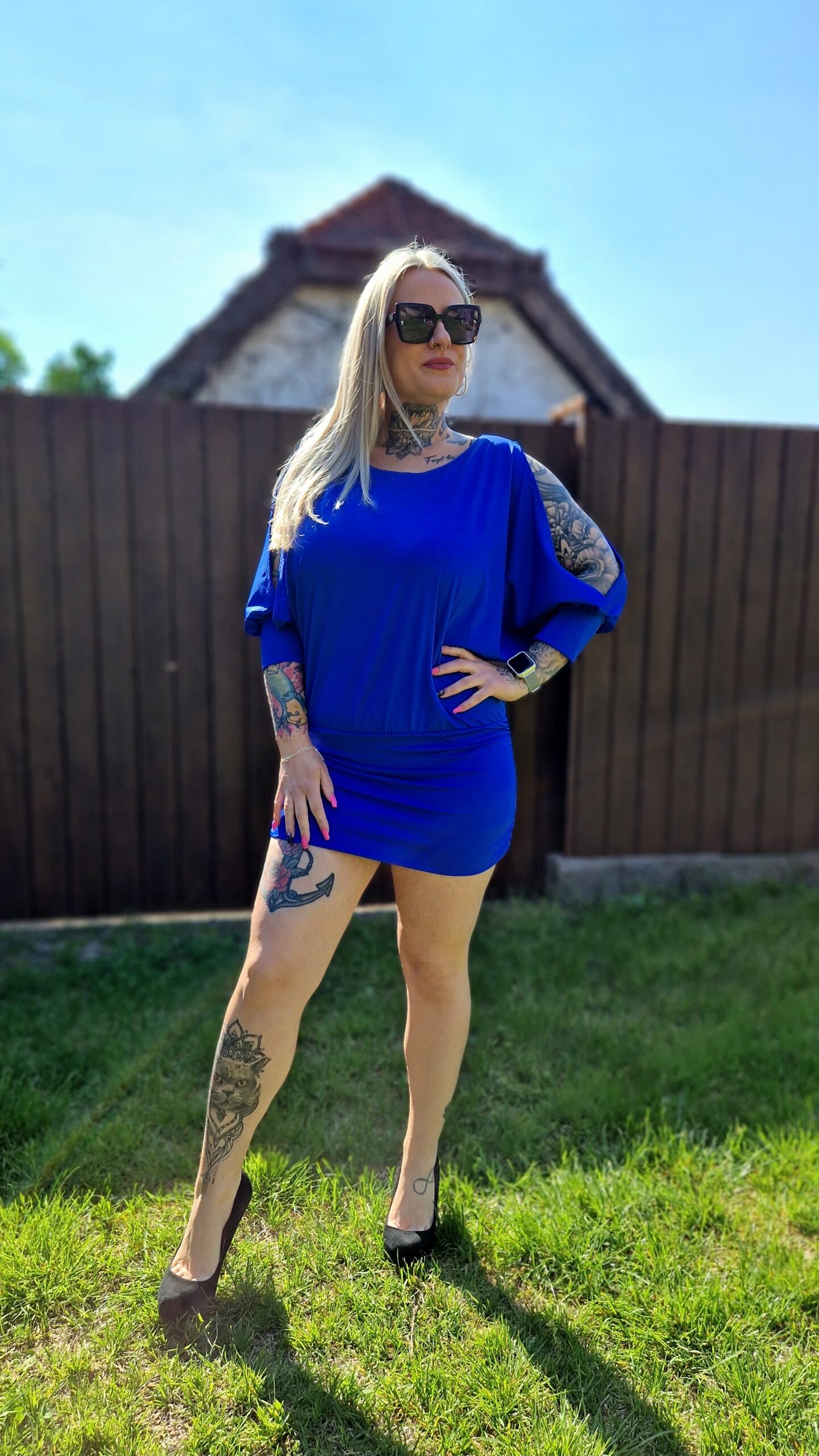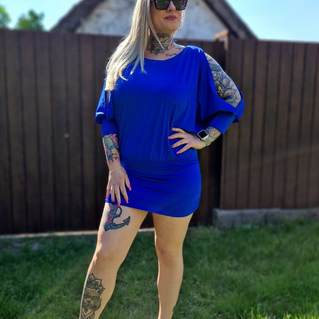 Miniruhaként viselve egy elegáns szandállal vagy papuccsal igazán stílusos nyári szett. Tunikaként leggingsszel vagy szűk farmerrel kombinálva is remek választás. Egy nagy napszemüveg és egy divatos táska tökéletesen kiegészíti a megjelenést. 💙👗👜