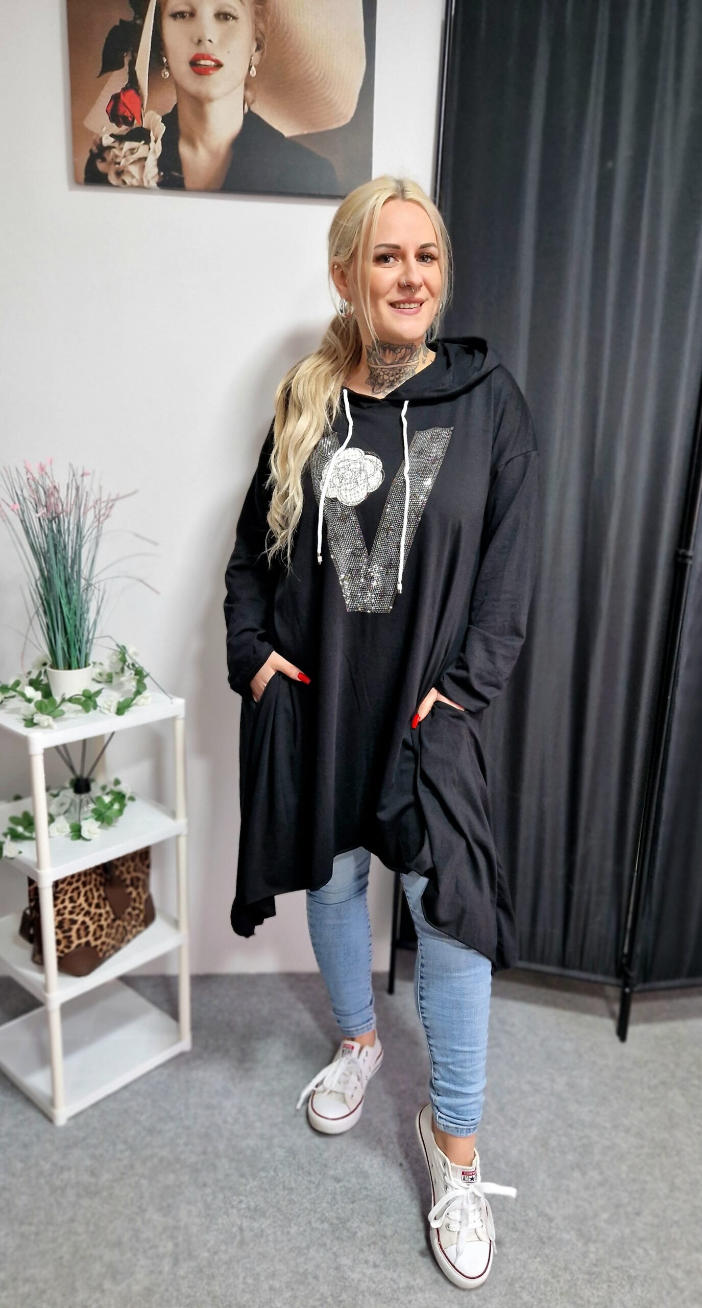 Párosítsd fekete vagy ezüst árnyalatú táskával, letisztult bokacsizmával vagy sneakerrel. Egy hosszú láncos nyaklánc vagy finom fülbevaló gyönyörűen kiemeli a V mintát.